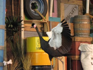 The show contains a wide array of animals including everyday pets like cats and dogs. These cats and dogs, over a hundred of them, had been rescued by the Columbus Zoo from local shelters and given a better home at the zoo and a better life full of fun by taking part in the Zoo’s Animals on Safari show. The show was performed as a mock safari television show with staff acting out different parts like vet and trainer. For animal lovers the show is full of hilarity as you watch cats and dogs, miniature pigs and barnyard ducks, rats and a groundhog as well as a skunk parade and race across the stage or up and over obstacles. Not only are there every day animals in the show but also rare and endangered ones like an Iberian lynx, an African crowned crane, a binturong and a black and white lemur. The show offers a rare opportunity for visitors to observe animals, rare or common, perform some of their unique and interesting behaviours, like ferrets scurrying up ropes with a body that looks like an inch worm. Animals on Safari also educates the public on not only the need for adoption from local pet shelters but also conservation issues like the loss of habitat for the critically endangered Iberian lynx, as well as rectifying old myths when their African crested porcupine shuffles across the stage, in that porcupines do not shoot their quills but shake them loose. I’m always excited to see a show while visiting zoos as I feel they afford a great venue for educating visitors as well as providing another opportunity to create a connection between visitors and individual animals.