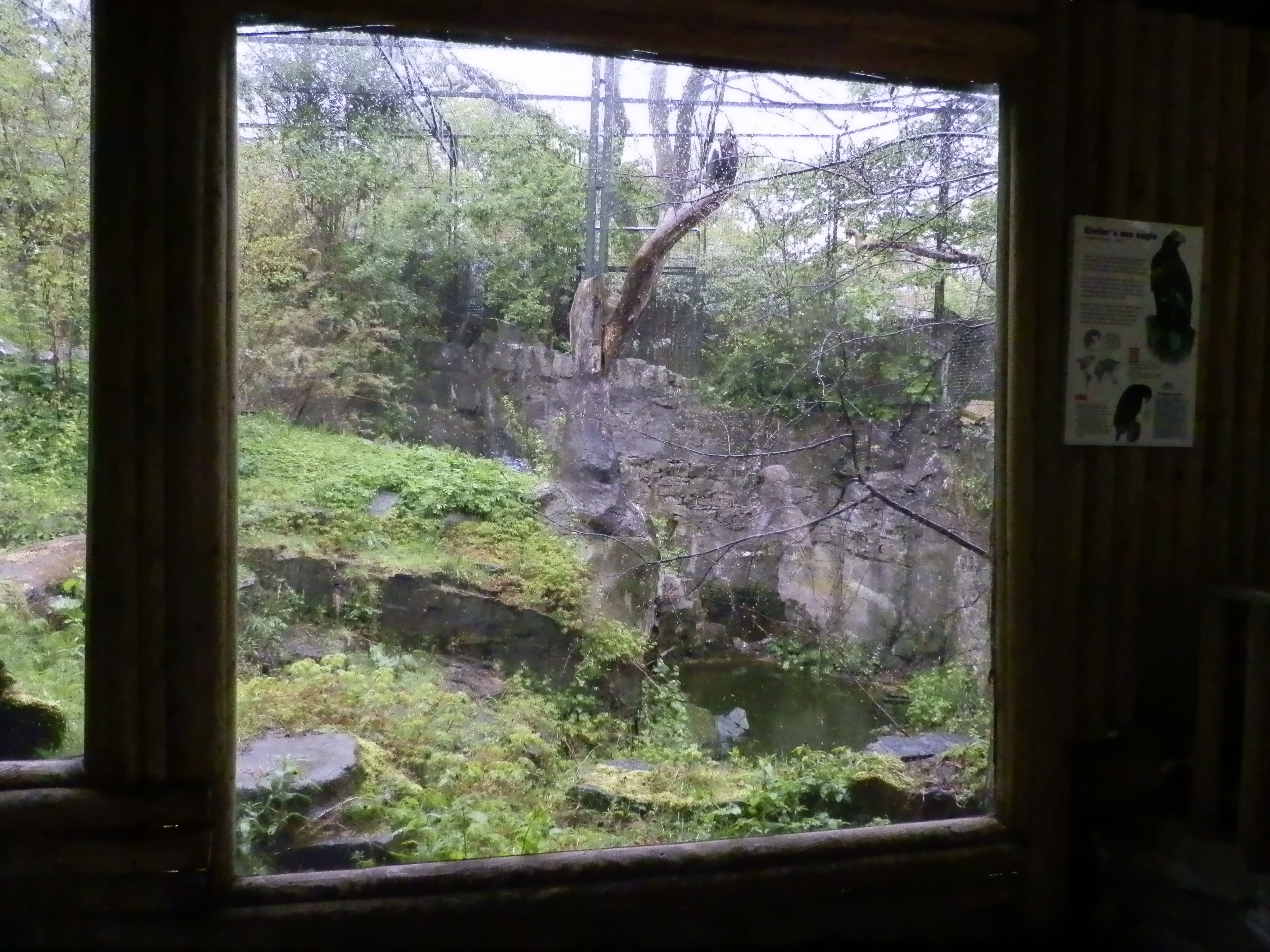 Lastly was the Steller’s sea eagle enclosure. Seeing this species was another first for me. From coastal northeastern Asia, the Steller’s sea eagle is the heaviest eagle in the world weighing in at 15 to 20 pounds, with an 8 foot wingspan and rare to find in captivity. These strikingly beautiful birds have dark brown to black plumage (feathers) with stark white accents. The zoo’s pair looked right at home perched up high in their lush enclosure with a stream running through it.
