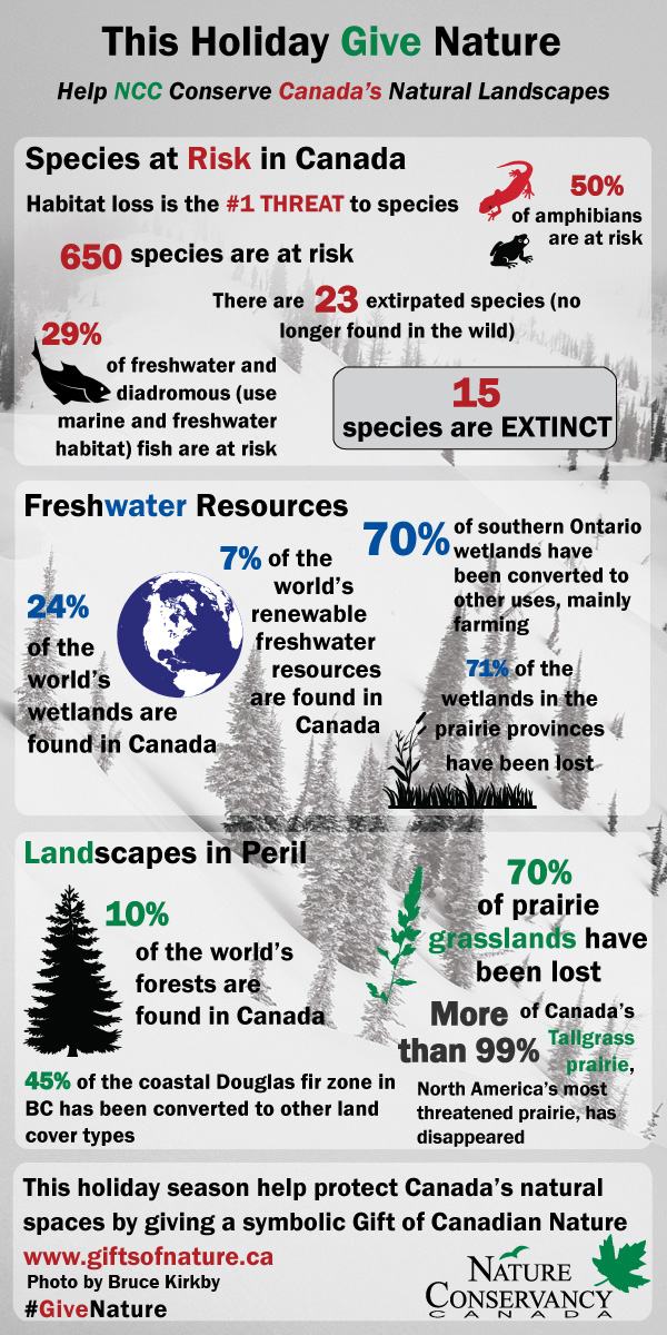 With the holidays and gift giving season around the corner the Nature Conservancy of Canada offers great gifts for educators to the person who has everything, for the environmentally conscious to the animal lover. Give the Gift of Canadian Nature today!