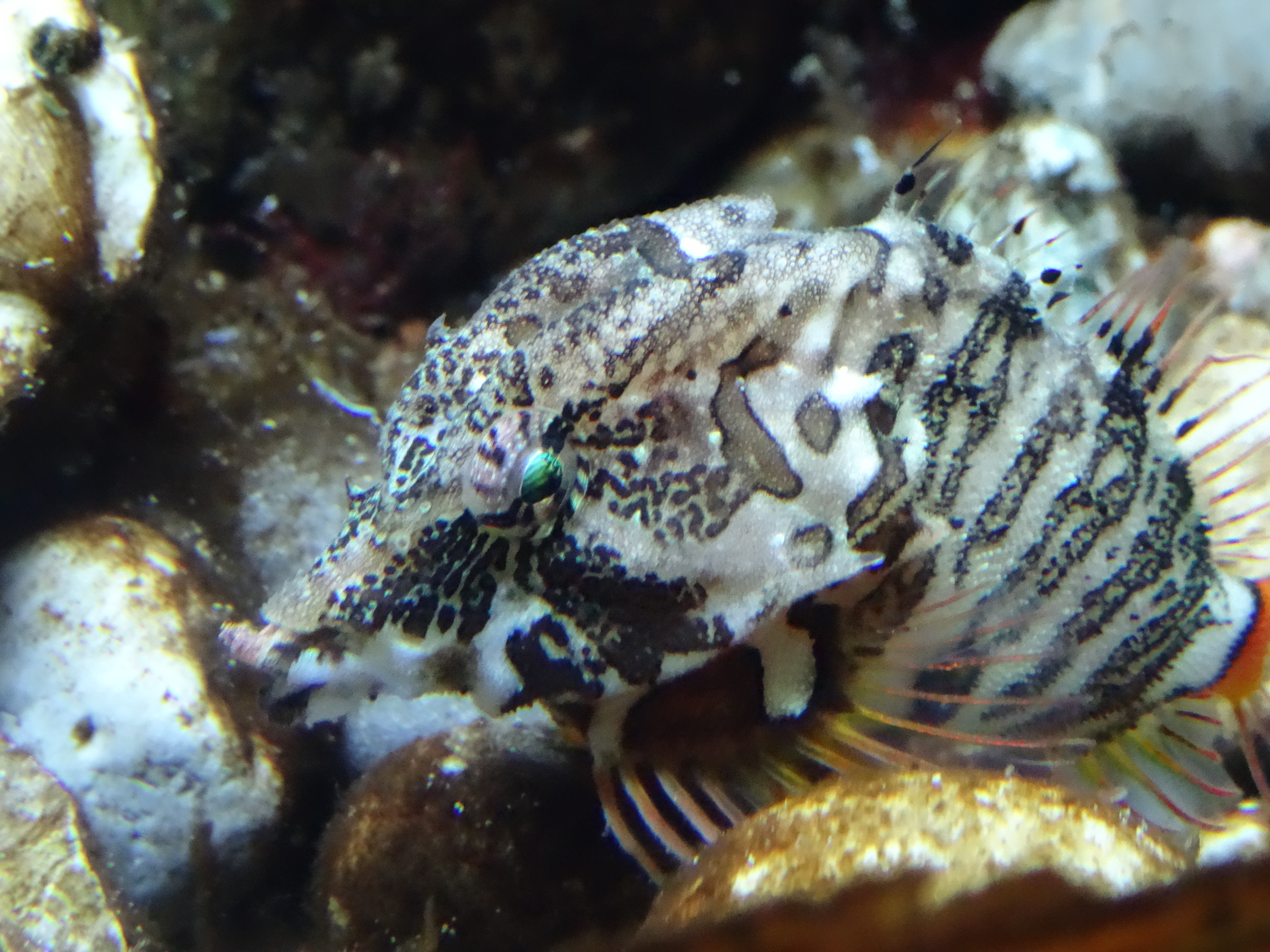 One of my old favourites and a new one can also be seen here. The wolf eel, which is not even related to other eels, is an old favourite of mine. I’m sure I’ve never heard anyone call any sort of eel even remotely cute but I must admit the wolf eel is, with its face full of old man character as well as strong jaws. The wolf eel call the northern Pacific Ocean home and can grow over 8 feet long and top the scales at 41 lbs. A new favourite is the grunt sculpin, a cute little fish that I’d never heard of or seen before, with its pointy nose and strange shaped body. The grunt sculpin is named for the odd sound they make when removed from the water – a grunt – it just adds to their cuteness for me.