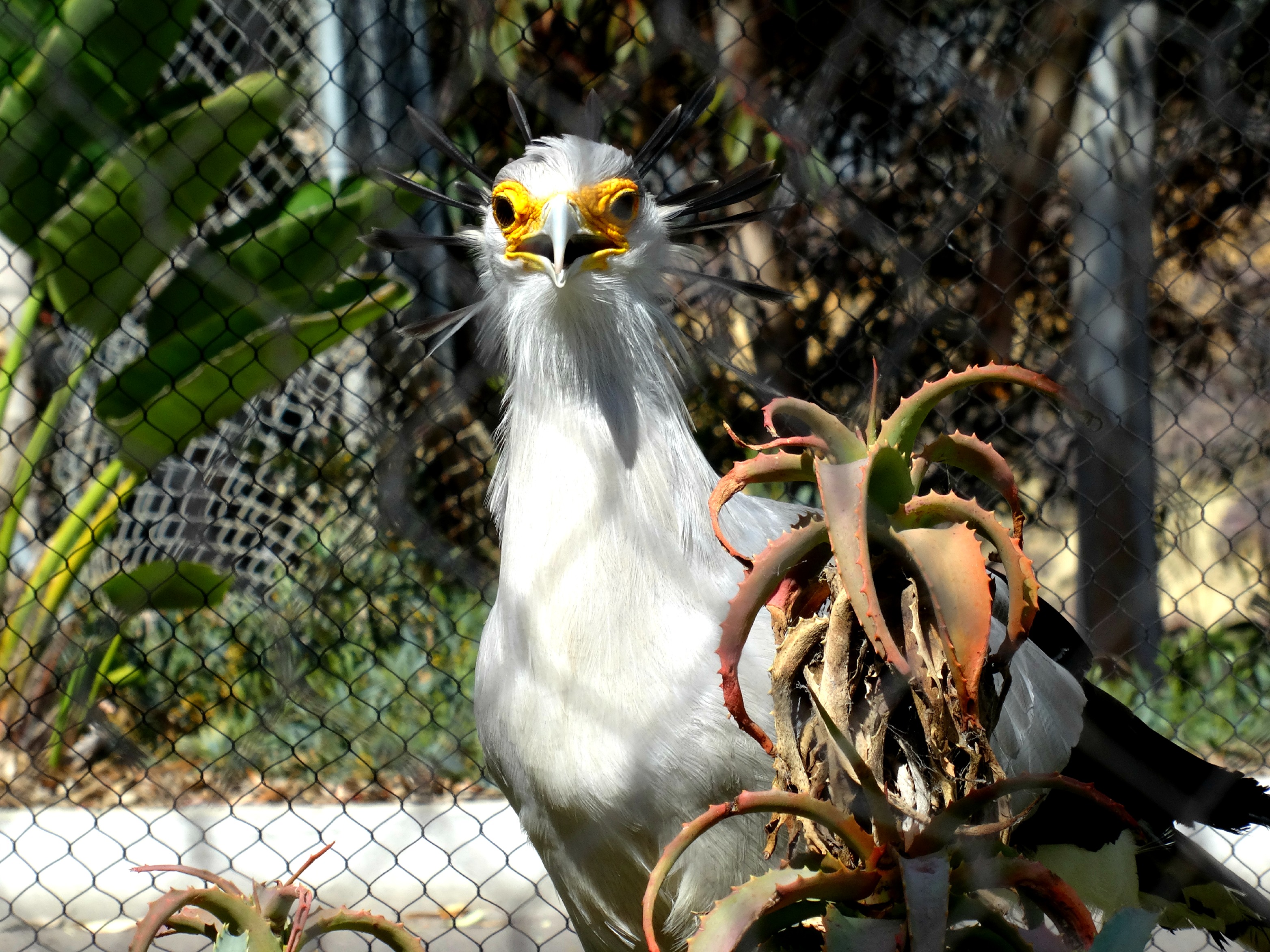 After the chill of the Arctic I headed down through Elephant Odyssey and Africa Rocks. At the northern entrance there is a great educational exhibit called Fossil Portal that is set up like a mock excavation site, a simulated tar pit, that reveals bones from animals that once roamed South California around 12,000 years ago. You’ll also see life-sized statues of the Colombian Mammoth, the Saber tooth cat and more, beside their modern-day counterparts. It’s here I met and saw some amazing animals doing amazing things, like watching a keeper working on training a female lion, she knew exactly what to do to get her reward (a chunk of meat.) I was also entertained by the stoic – yet comical – secretary bird, with its proper posture and long, skinny legs. I stood and watched as this bird, whose natural diet includes lizards, used a small stick to display its natural behaviour in killing its prey by taking the lizard (or stick) and throwing it down to the ground, stomping on it and repeating the process. It was amazing to watch. I also met Delilah, a black hornbill who I learned likes people so much so that they had to put up a plastic sheet around her wired enclosure fence because she kept bringing her visitors dead mice. Ah, so thoughtful.
