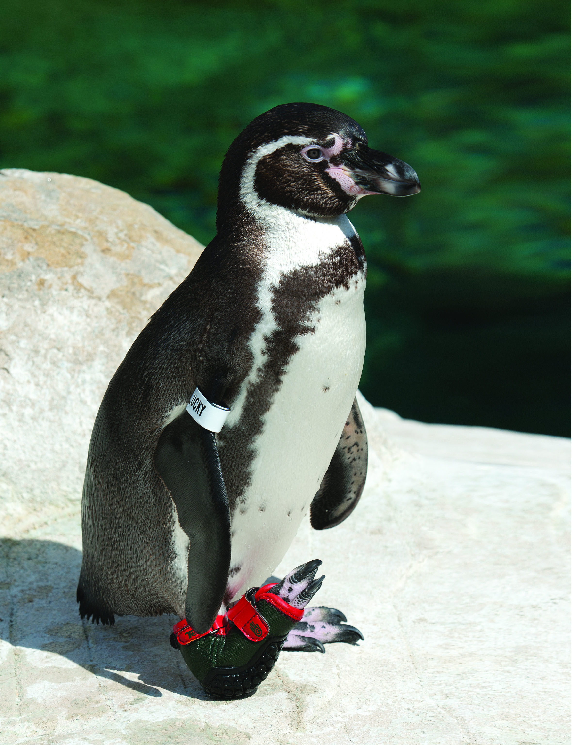 The penguin exhibit was next and home to Humbolt penguins who are found along the Pacific coast of South America from Peru to Chile. This state of the art exhibit has nesting caves and underwater viewing to watch these agile birds fly through the water. It was here that I meet the most fascinating and memorable animal from my west coast adventure, Lucky. Lucky is a four-year-old Humbolt penguin who hatched at the zoo but keepers soon after realized he had a limp, vets determined it was a problem with the growth of his foot bone and it was decided that he would need assistance to walk with the aid of a shoe of some sort. Amazingly with the help of Teva, a shoe company, who created a custom shoe for Lucky and has committed to for his life, he can now walk, hop and swim like the rest of the penguins. Lucky certainly is lucky to have such dedicated keepers and the help of a big time brand like Teva and has touched the hearts of many, including mine!