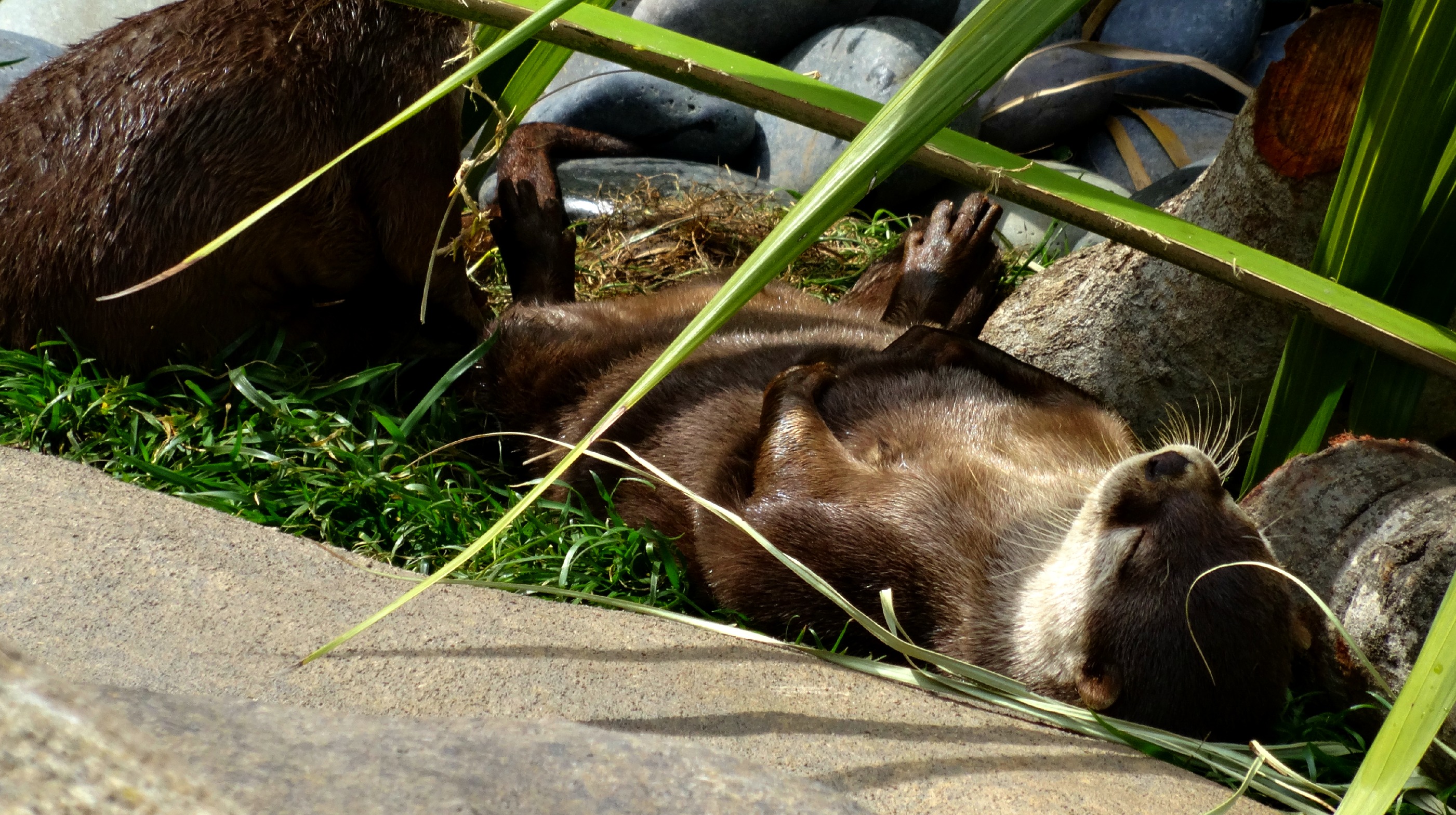 And as I made my way back to the front to leave I was thrilled to find another exhibit full of sweet and playful otters. They were swimming and slinking around, in and out of the water, two chasing each other, it was a sight that always fills me with pure joy. There’s something innocent and endearing about otters, they always seem so happy, like they don’t have a care in the world. Strangely I always try my best to get a still shot of them but they’re always so fast and constantly on the move but I caught a brake at the Santa Barbara Zoo, they started to settle and ready for a siesta and then I hit the jackpot and I couldn’t have been happier when I finally caught a shot of one laying on his back, belly up – TOO CUTE!
