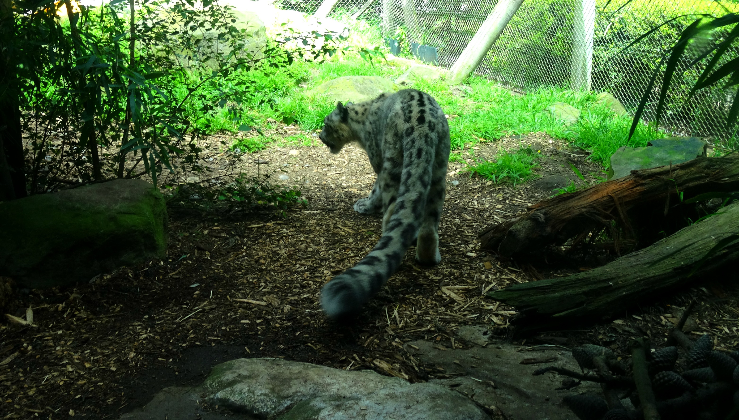 Another of the feline species that are found at the zoo is the magical and majestic snow leopard. You almost feel like you’re walking through a small Tibetan village with Tibetan prayer flags strung up and then enter an alcove where there before you amongst the foliage, large rocks and perches stands the illusive snow leopard. I stopped short when I approached as there it was right at the glass in all is glory, it casually walked by me and then headed off into the exhibit with its stunning, long, fluffy tail trailing behind it, and it stopped briefly to turn its head, as if posing for the camera.