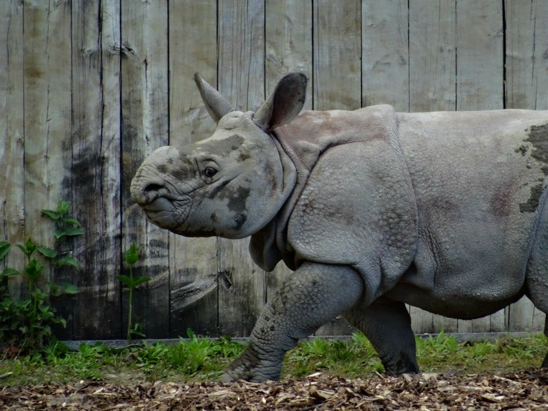 In February of this year (2016) a new baby male Indian rhino calf was born at the Toronto Zoo. His name is Nandu, meaning ‘one who is cheerful and happy’, and boy does his name ever suit him. I’ve had the opportunity to see him twice since he was born, once in May at 3 months old, and again in November at 9 months old. And both times he was frolicking around their outdoor yard, either running behind mom, or checking out the different things in his exhibit. And he’s also the largest of Toronto Zoo’s babies, probably weighing over 1000 pounds by now!