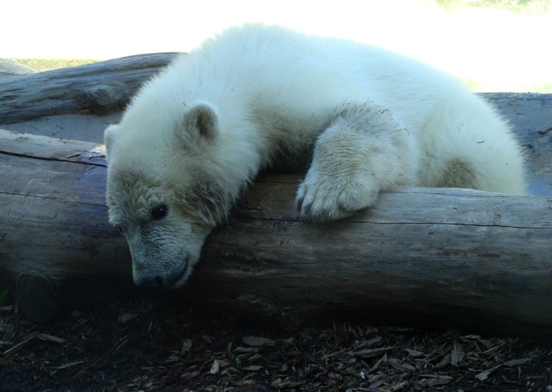 On Remembrance Day of 2015 the Toronto Zoo added a new special baby with the birth of a female polar bear cub. The cub was named Juno, in honor of Remembrance Day and Juno Beach. And now, at a year old, he’s even been ‘adopted’ into the Canadian Army, and is ranked as an Honorary Corporal. We Canadians love our polar bears! He’s extremely playful and inquisitive, as he dives head first into his small pool and sits in his black tub, and is even getting to try out the big adult polar bear pool!